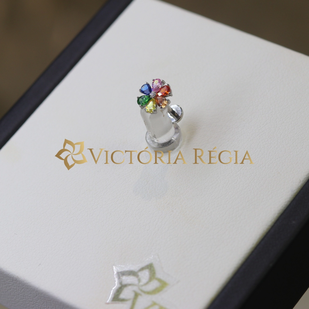 Microbell Reto Flor Collor Cravejado com Microzircônia Aço Natural