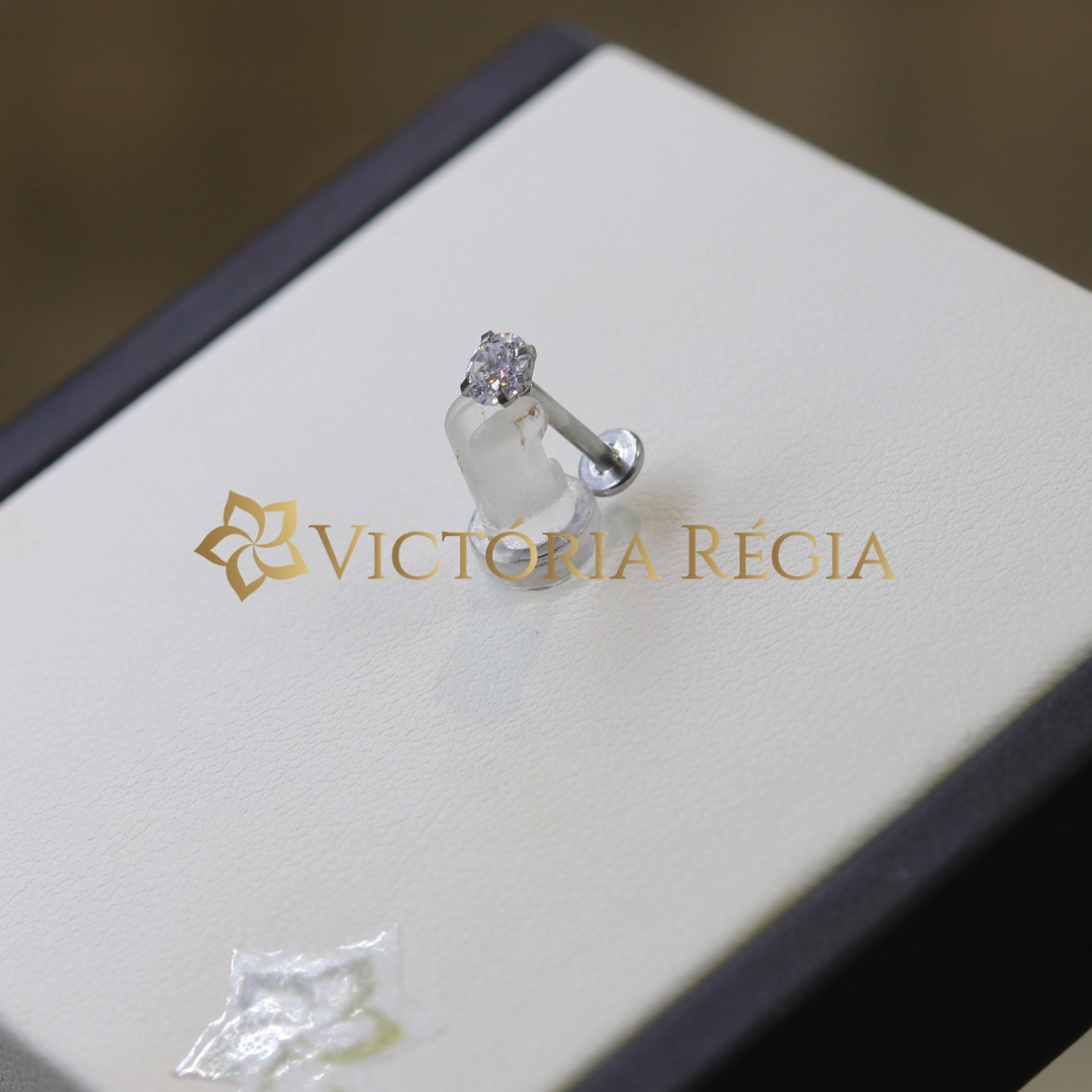 Piercing Cartilagem - Microbell Reto Ponto de Luz Cravejado com Microzircônia Aço Natural