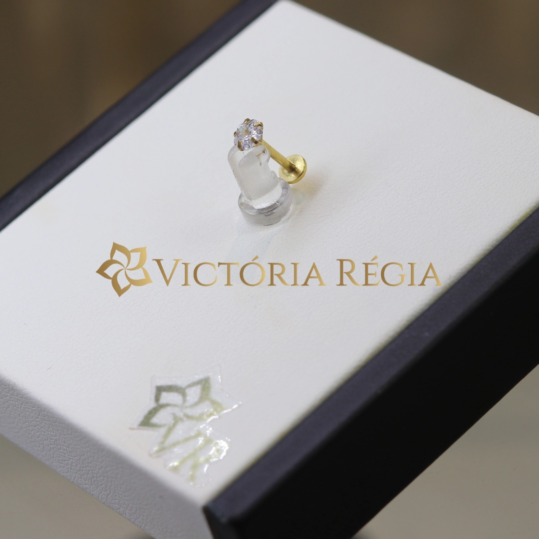 Piercing Cartilagem - Microbell Reto Ponto de Luz Cravejado com Microzircônia Aço Pvd Gold
