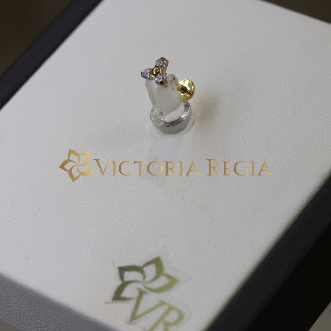 Microbell Reto Trinity Cravejado com Microzircônia Aço Pvd Gold