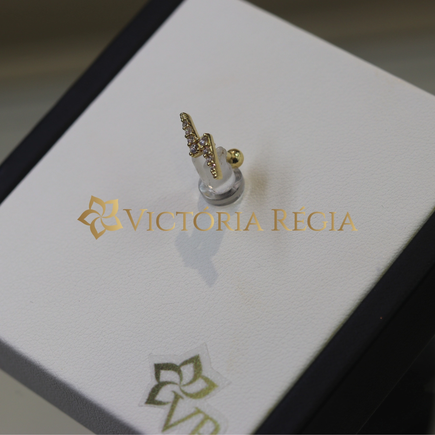 Piercing Cartilagem - Microbell Reto Raio Cravejado com Microzircônia Ouro 18k Amarelo