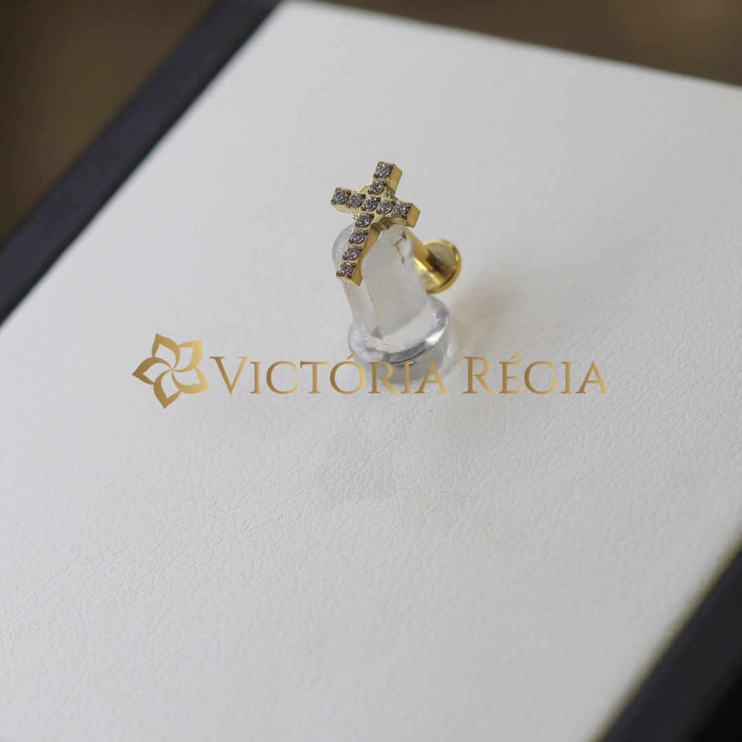 Microbell Reto Cruz Cravejado com Microzircônia Titânio Pvd Gold