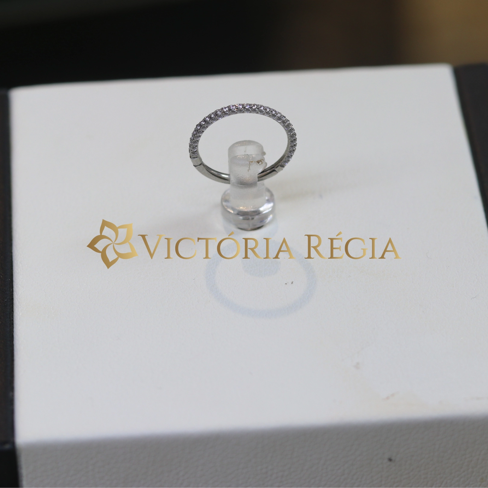 Piercing Conch - Argola Segmento 10mm Cravejada 3D Titânio Natural