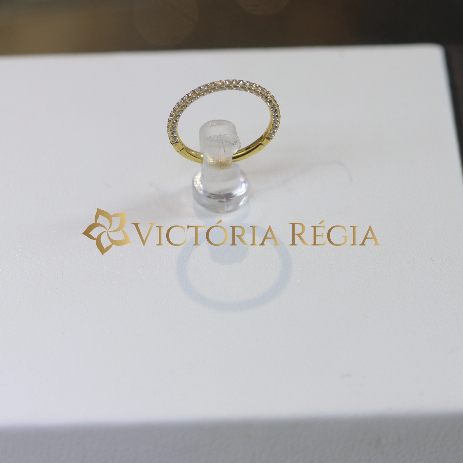 Argola Segmento 10mm Cravejada 3D Titânio PVD Gold