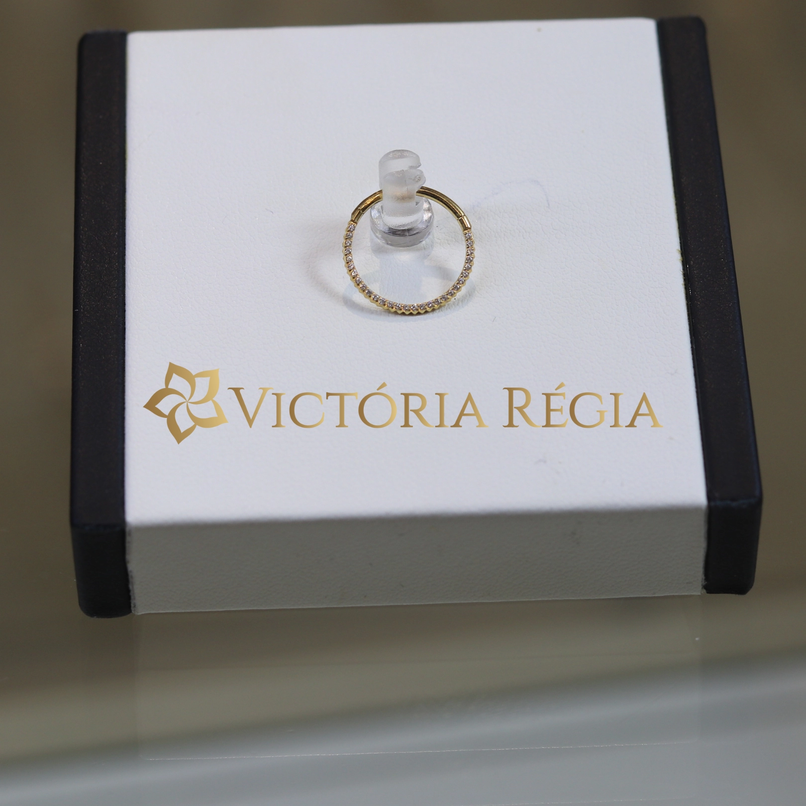 Argola Segmento 12mm Cravejada Titânio PVD Gold