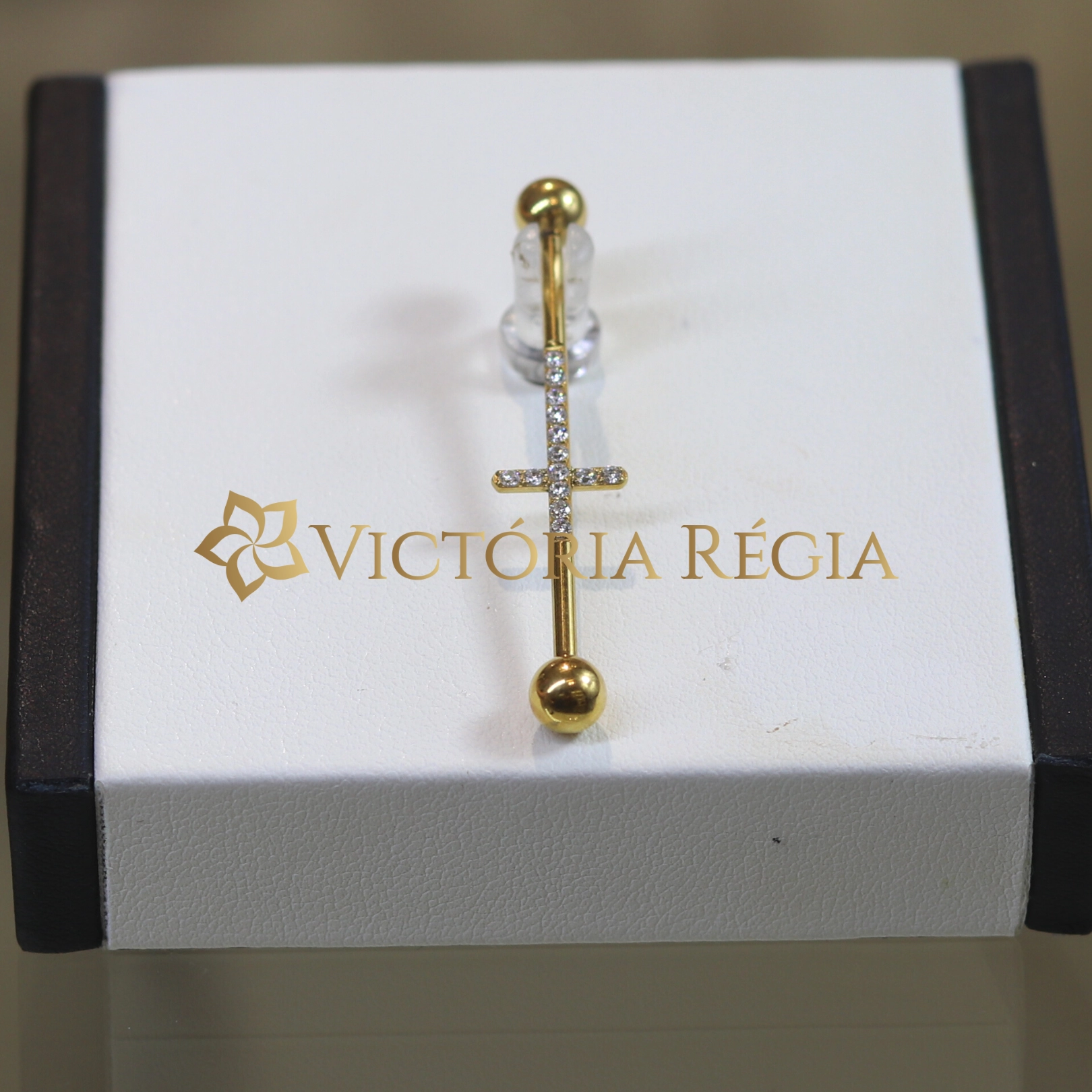 Megabell Cruz Cravejada Aço Inox PVD Gold