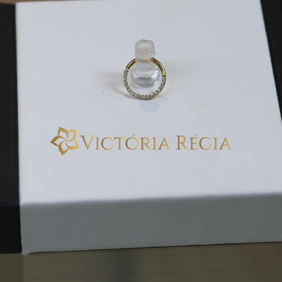 Piercing Septo - Argola Segmento com Microzircônia Titânio PVD Gold