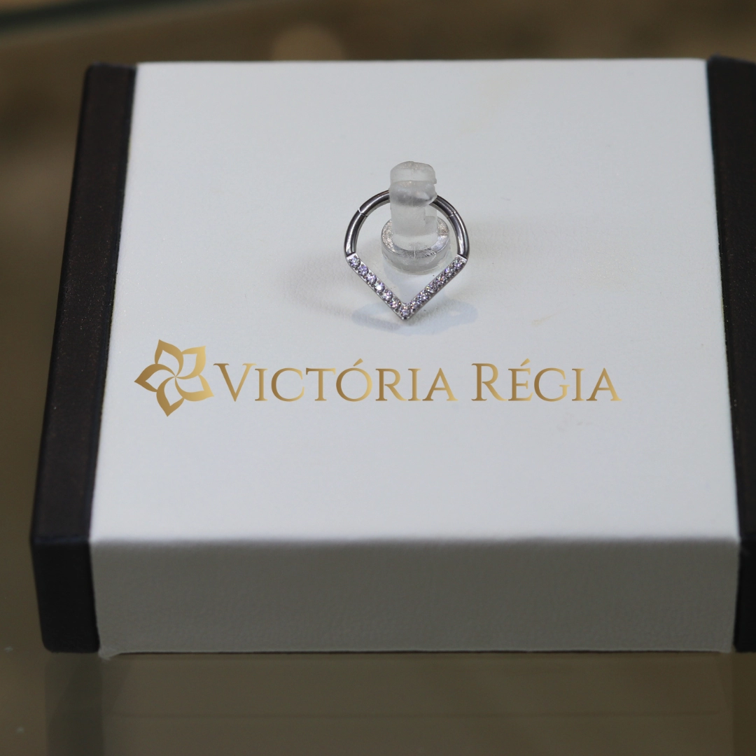 Piercing Septo - Argola Segmento com Microzircônia Triângulo Titânio Natural