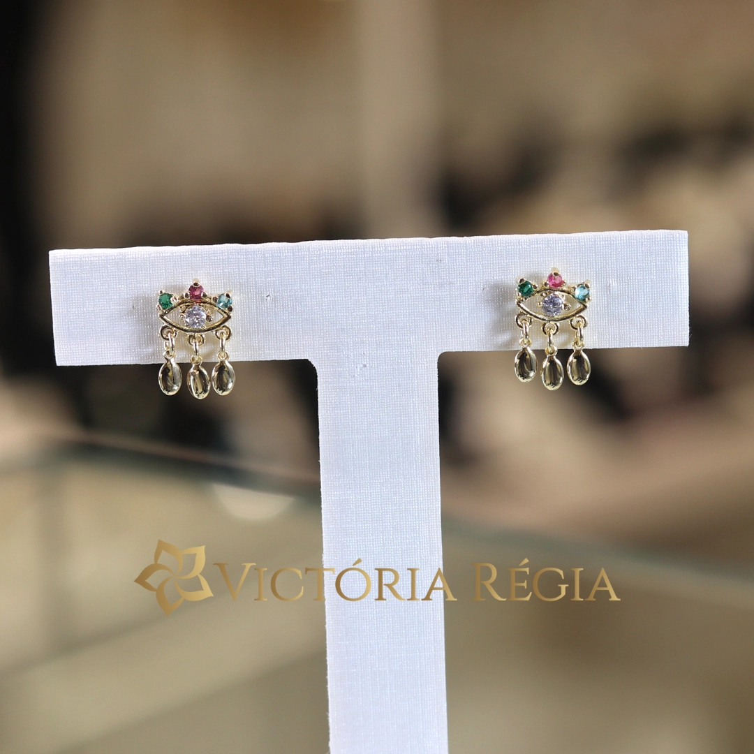 Brinco Olho Grego Multicor Cravejado com Microzircônia
