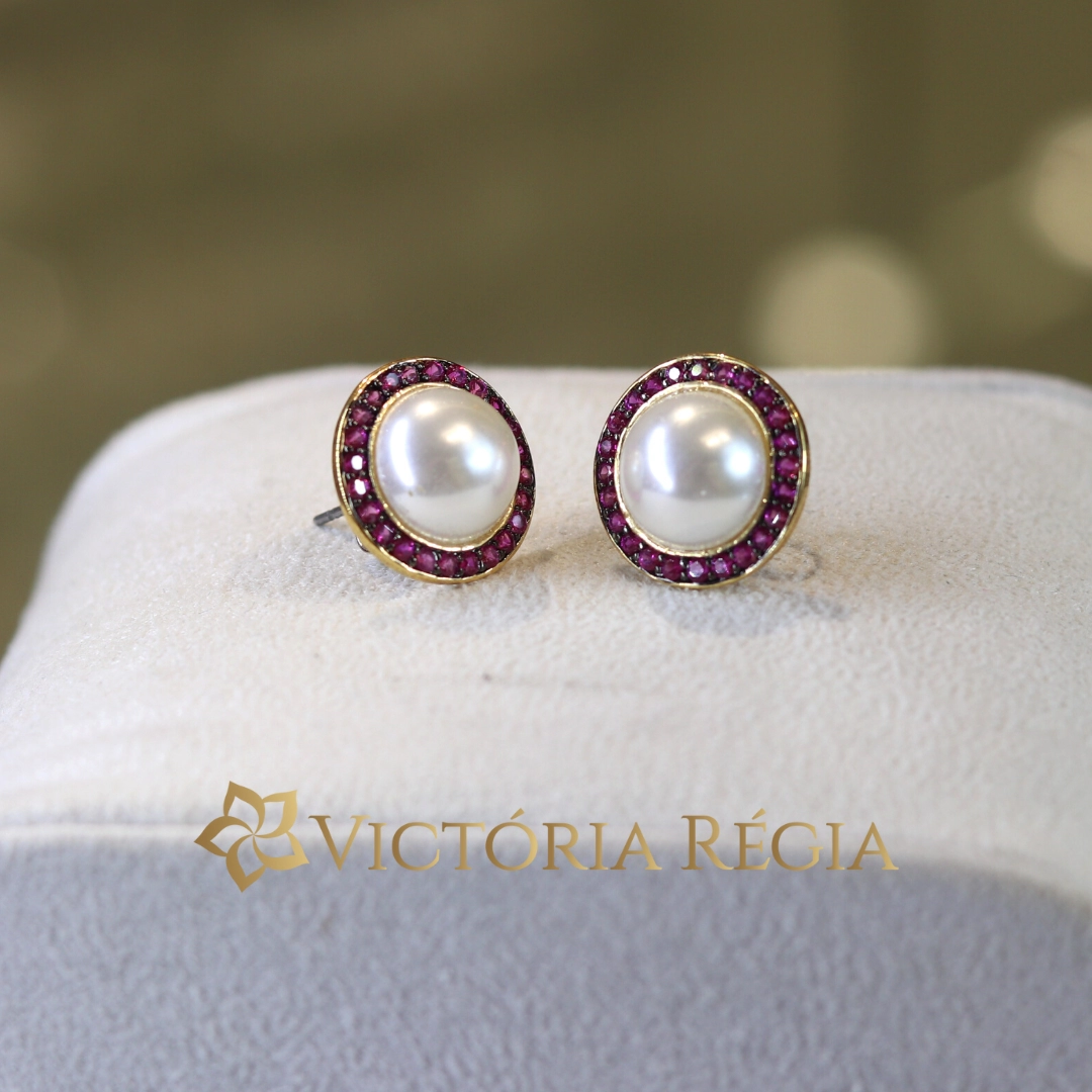 Voltar para a página inicial   >   Folheados   >   Brinco Redondo Fúscia com Pérola e Microzircônia