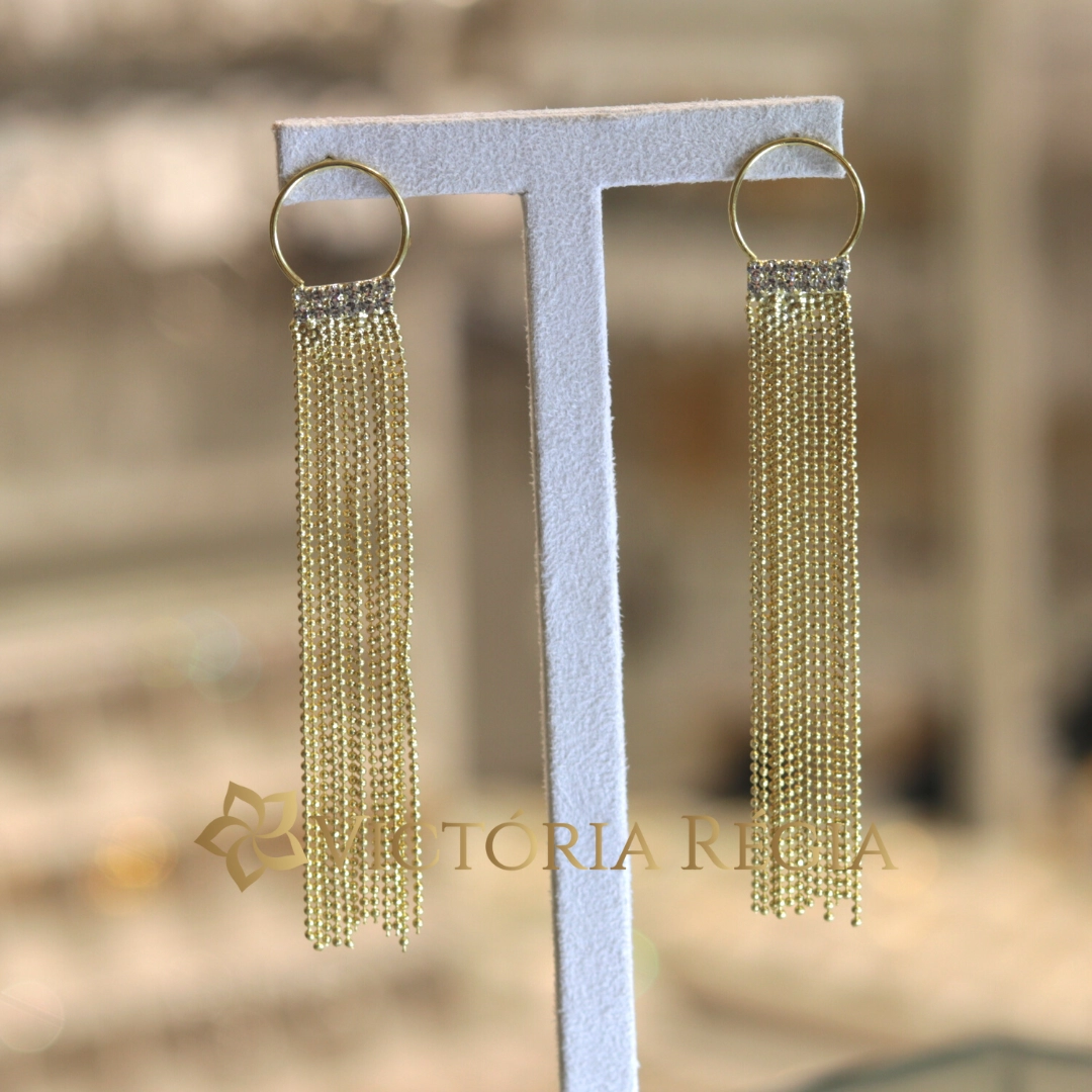 Brinco Franja Cravejado com Strass Cristal