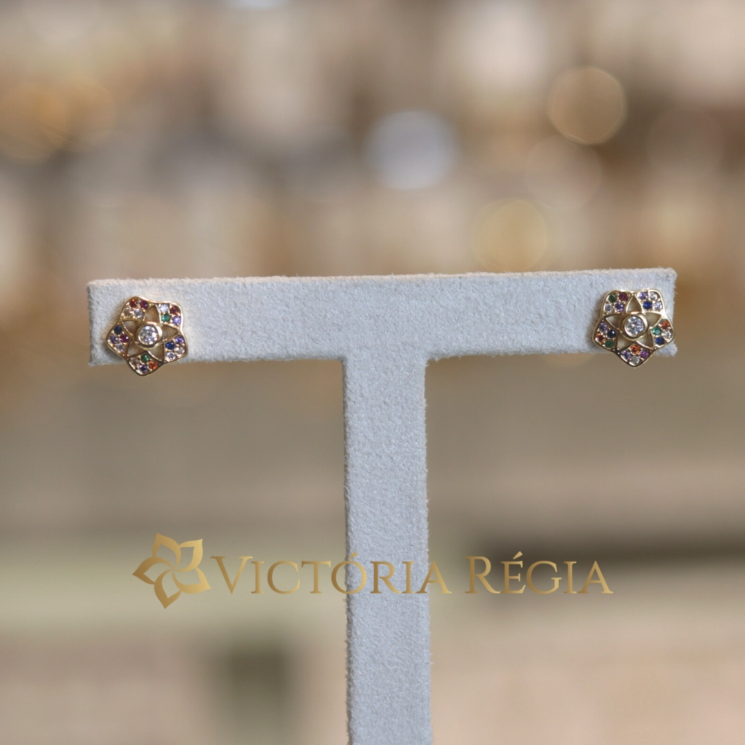 Voltar para a página inicial   >   Folheados   >   Brinco Flor Multicor Cravejado com Microzircônia